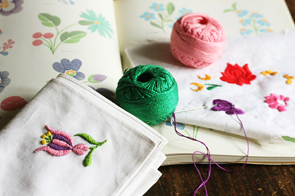 ハンカチにお好きなモチーフを選んで刺してみましょう。