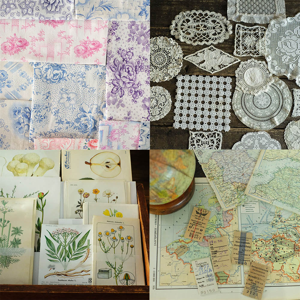 レースやリボン、ヴィンテージのはぎれセットもありますよ。