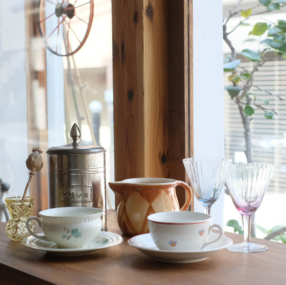 グラス、カップアンドソーサー、ガラスの花瓶などなど、たくさん揃えてお待ちしています。