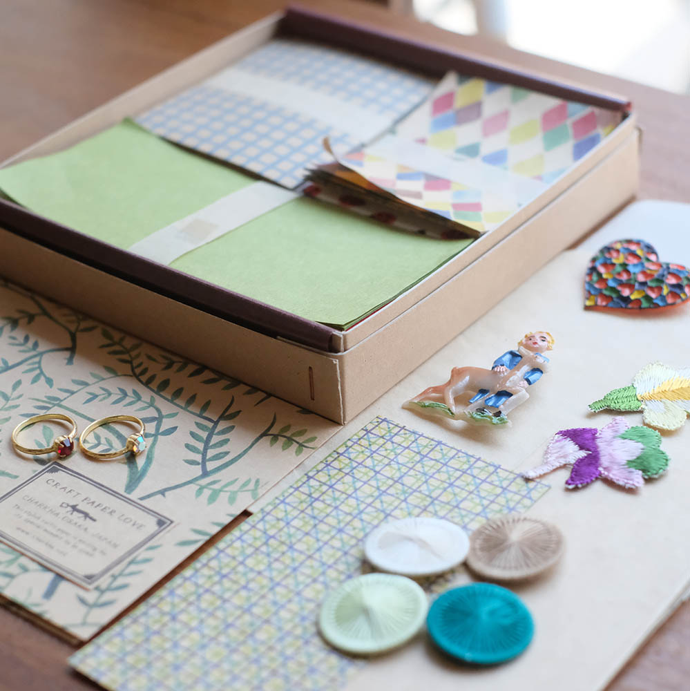 紙博では、オリジナルの包装紙封筒やメモ帳をはじめ、外国の古い切手、切符、コラージュにぴったりな紙片、植物画などを、