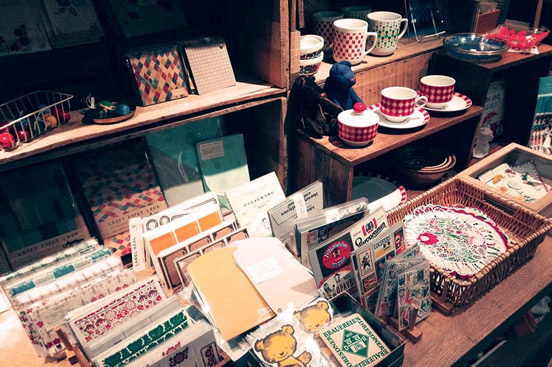 ヴィンテージの食器やイースターの置きもの、キッチンクロス、そしてハンガリー刺しゅうも並んでいます。